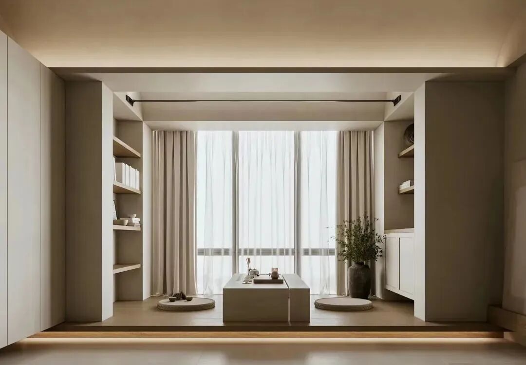 3.可根据不同空间设计搭配不同透光度、不同样式的窗帘。