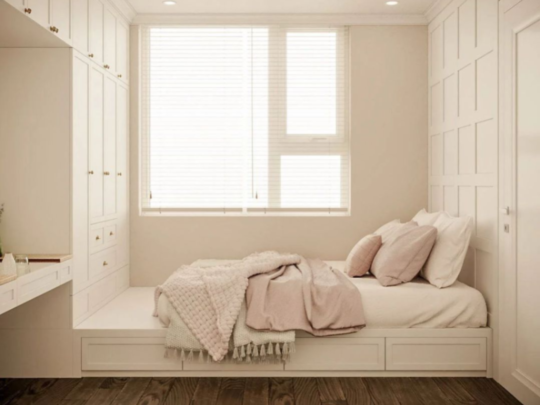 3.从储物出发,可以利用飘窗定制柜子增加卧室的收纳空间。