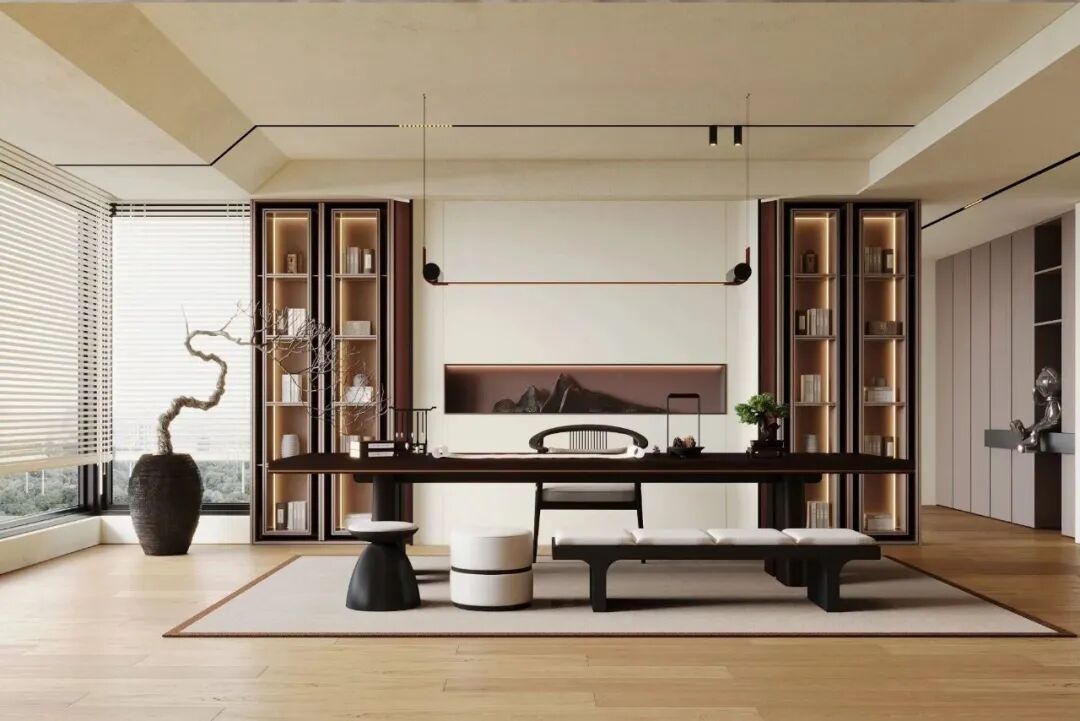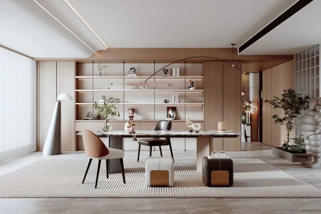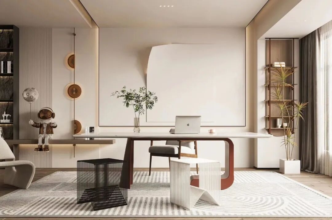 榻榻米可以省去很多不必要的物件,适合喜欢断舍离风格的家人。其次,榻榻米书房的设计可以节省空间。榻榻米床垫可以被折叠起来,以便在白天时使用书房作为客厅或办公室。这种空间利用的设计非常适合那些住房面积较小的人们。