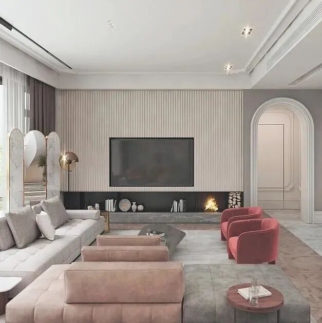 不管是窗体、柜体、门、墙板,窗帘,门洞等都尽可能垂直到顶的设计,如果不能也尽可能的设计高一点。大胆一点,把门的高度提至天花板,隐形门就很适合这样的设计,它可以造成一个高大空间的错觉,如果不能到顶,也可能尝试尽量高的设计。就算你的窗户只有一半,建议选择垂直落地窗帘,尽量安装到顶,让空间看起来能更高挑大气!