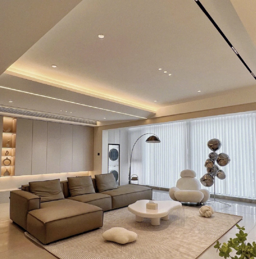 ✔无主灯设计能够使得光源均匀的铺满空间,采用灯带、筒灯、射灯等来照明,再使用落地灯等可移动的灯具来增强局部光源,丰富空间层次,营造不同的空间氛围!