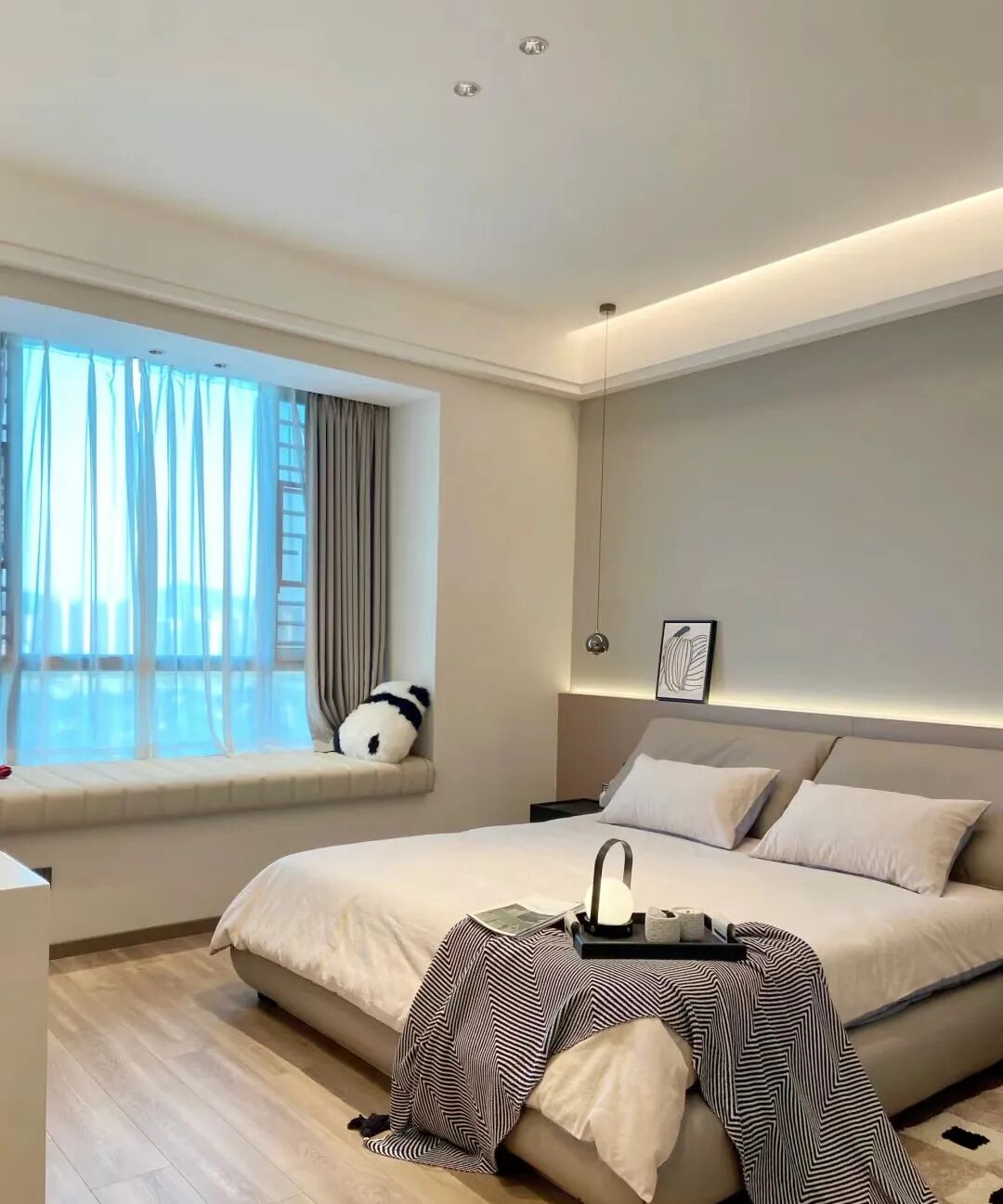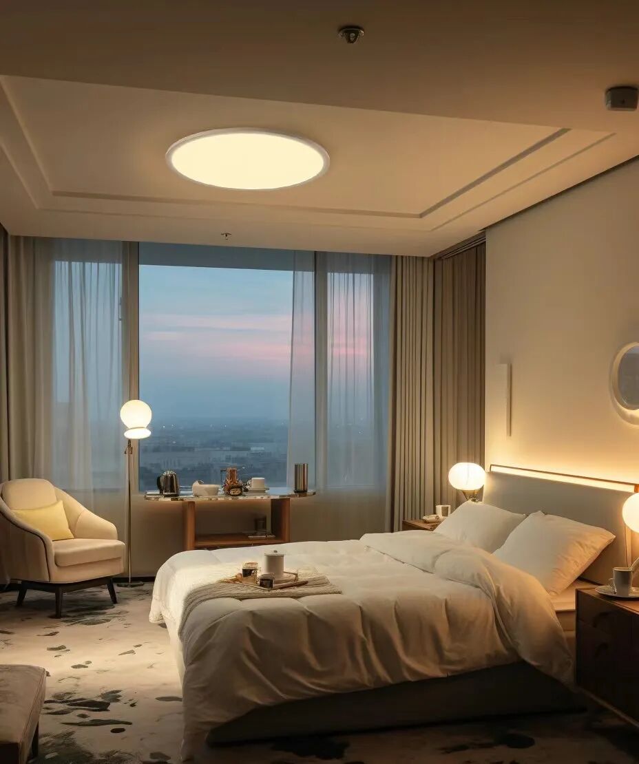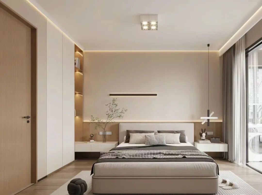 在布置灯光时,尤其需要注意避免光线直接照射到枕头区域,以保护视力。对于习惯夜间起床的人来说,推荐选择智能起夜灯或在床底安装柔和的灯带,这样既能提供足够的光线,又不会因光线过强而刺激眼睛。