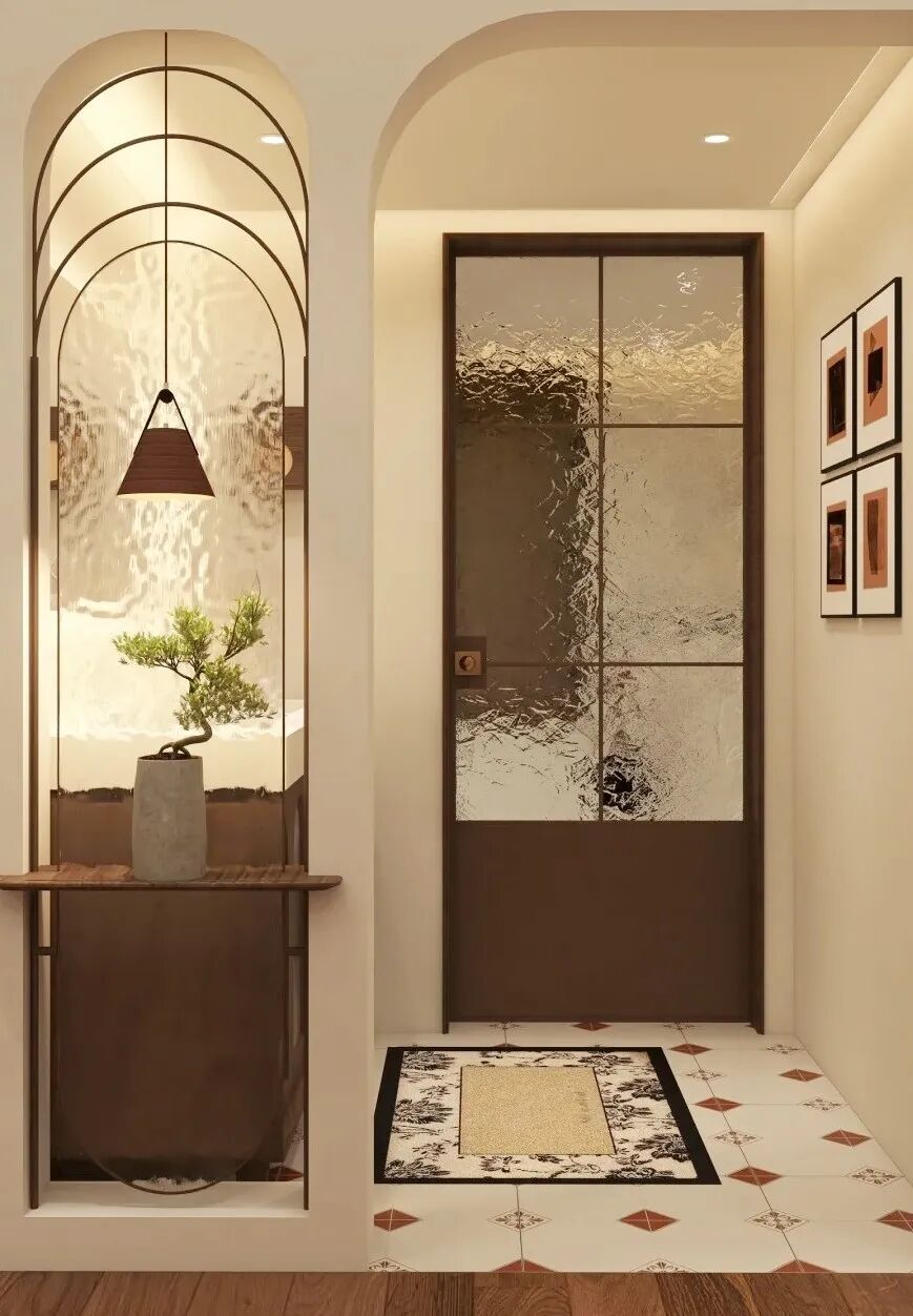 在玄关、阳台铺贴花砖,划分功能区的同时增加趣味性。比如玄关地面用几何菱形花砖,从进门起就拥有独特仪式感。