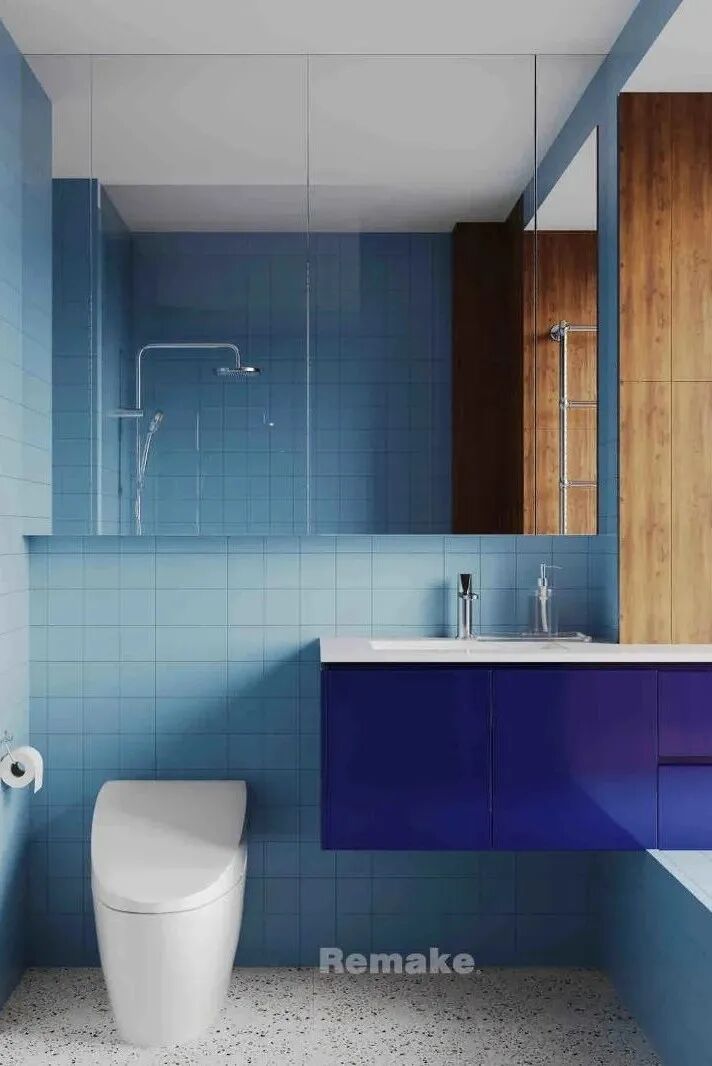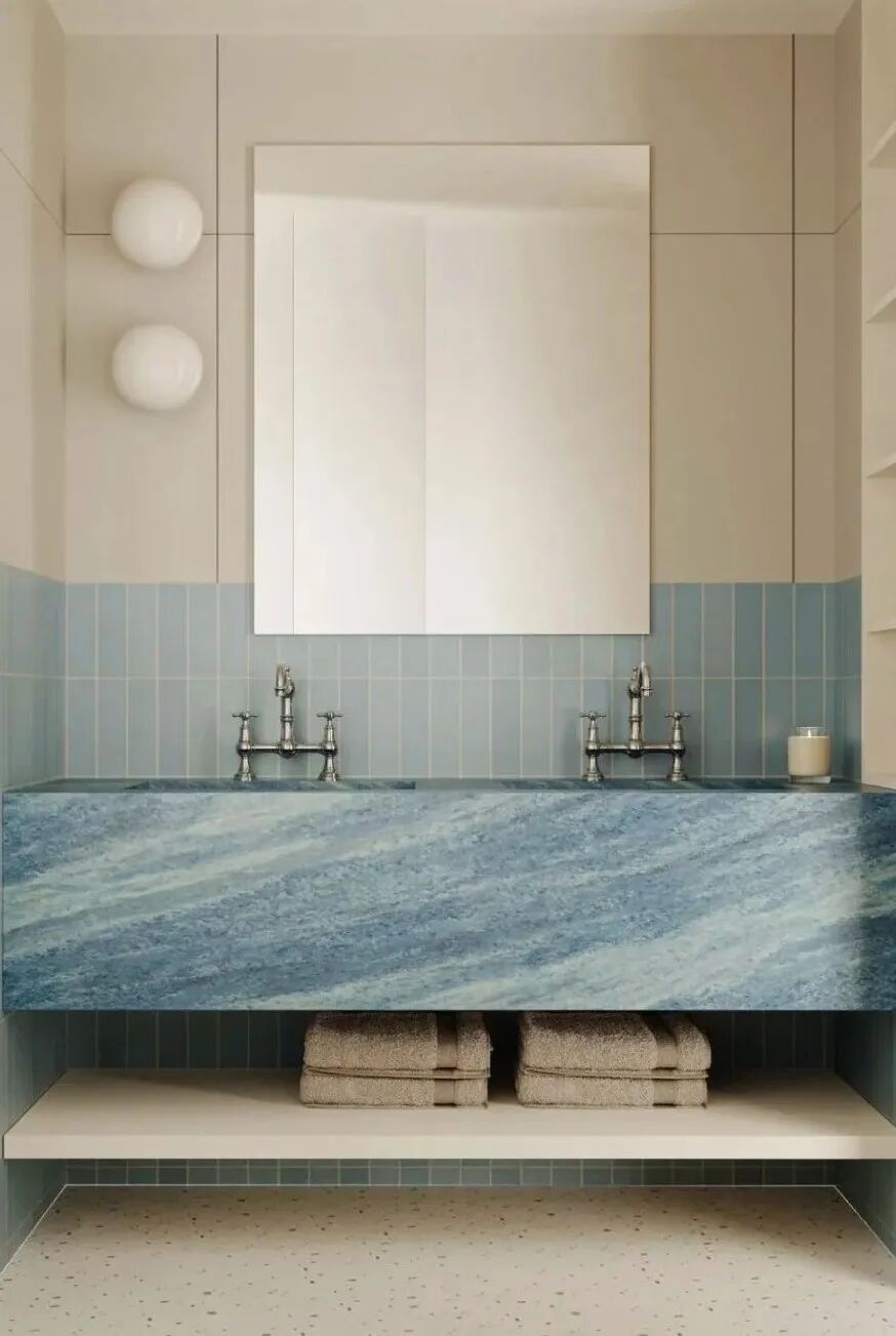 空间以蓝色小花砖为主,释放出静谧舒适的气息,清新自然,色彩相互呼应协调,有着独特的韵味。