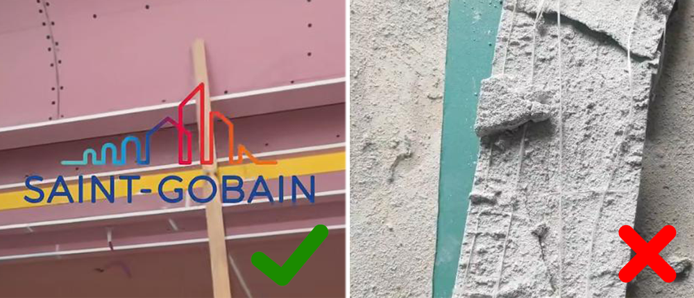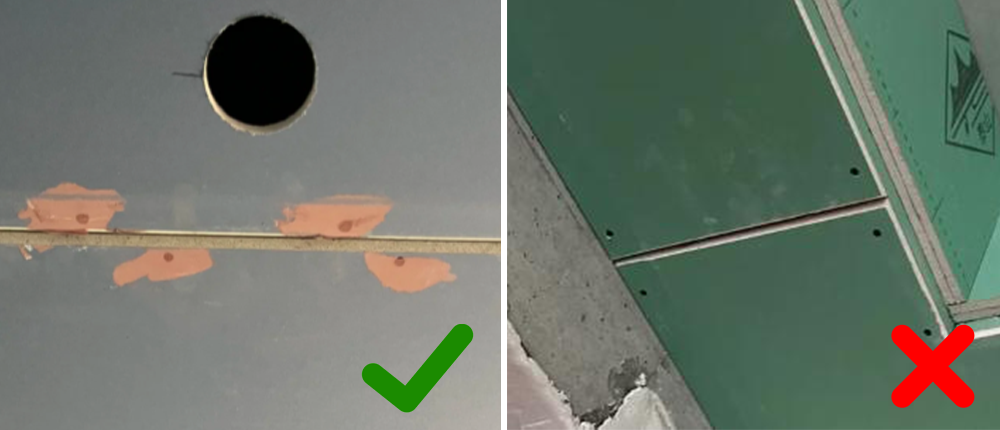 ❌ 石膏板拼缝别直对