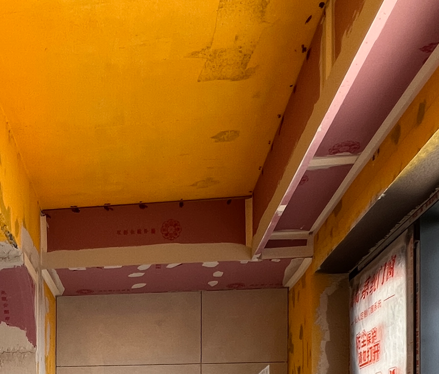 普通石膏板,遇潮后板材易腐烂,表面会逐渐起皮、发霉,甚至脱落。