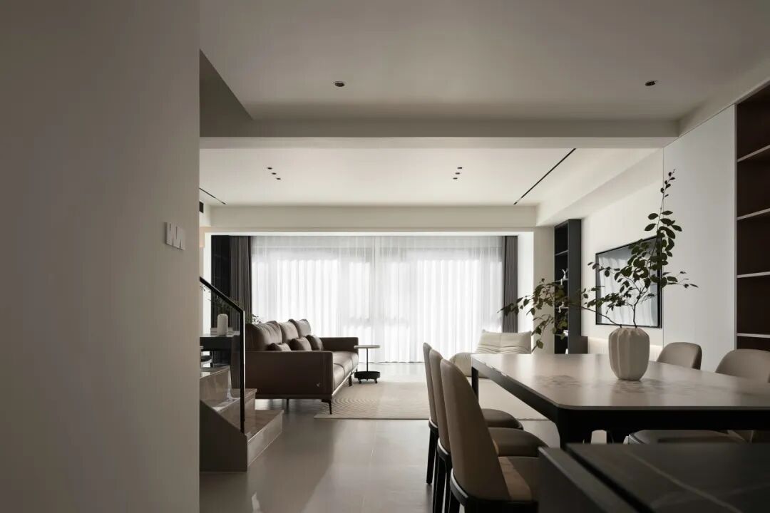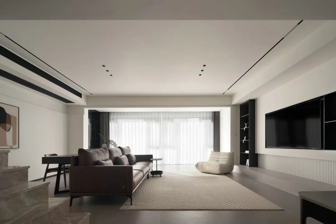 留白的纯粹感,多功能的场景,休憩区加入黑色家具,形成经典搭配。