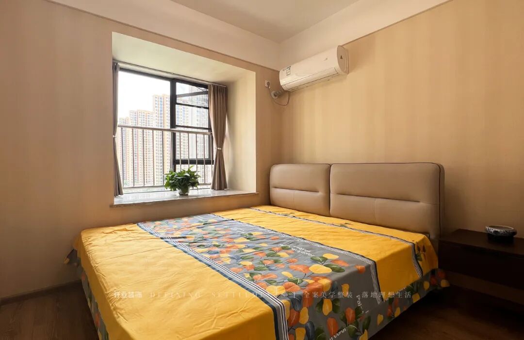 次卧空间更加注重内在的开阔性和功能性的打造,床体靠窗安放,为空间留出足够收纳区,飘窗保留做后期阅读与娱乐区,从容了时光。