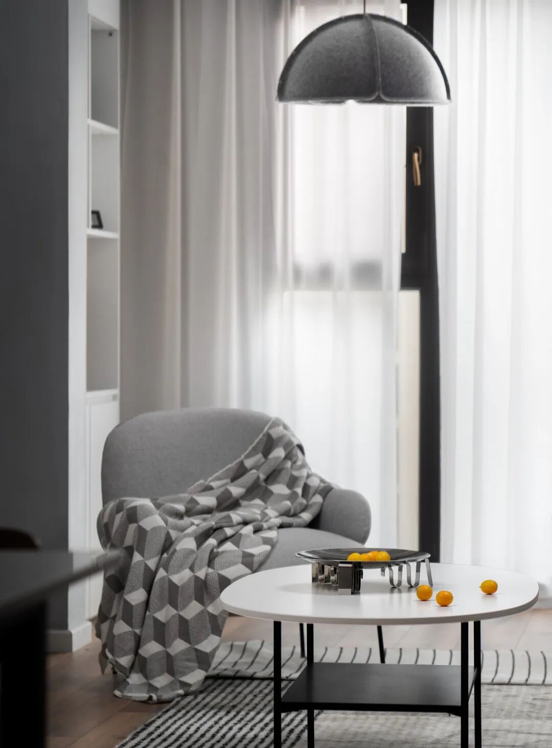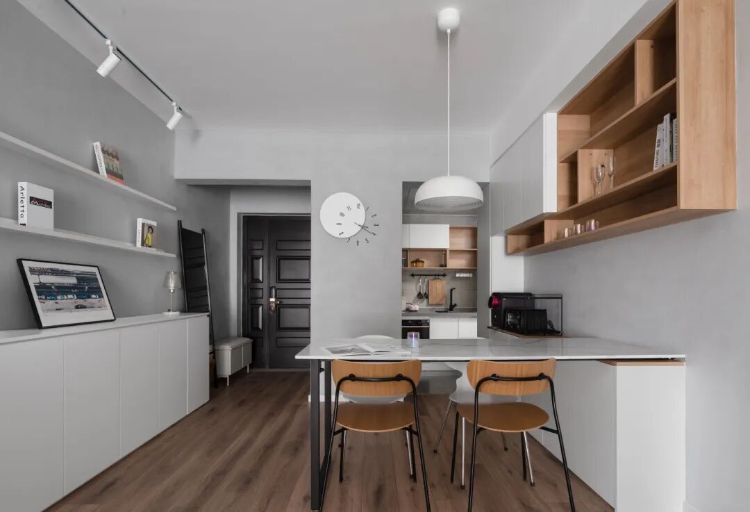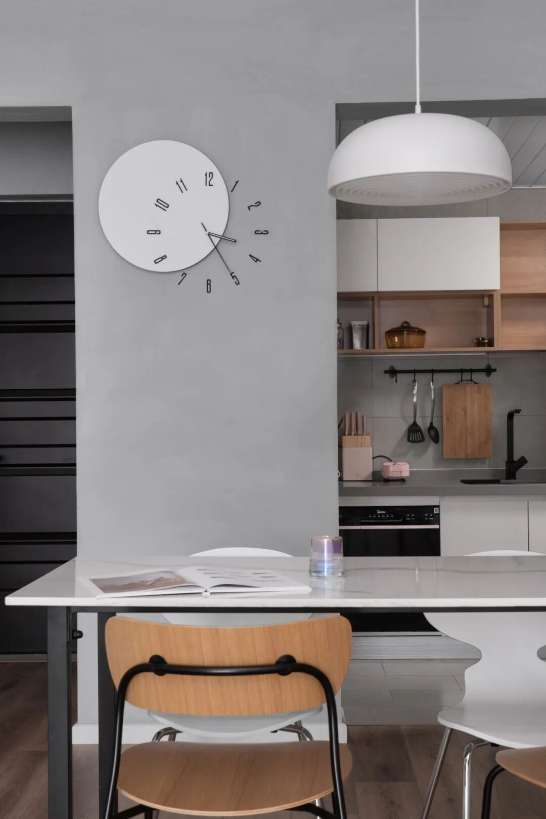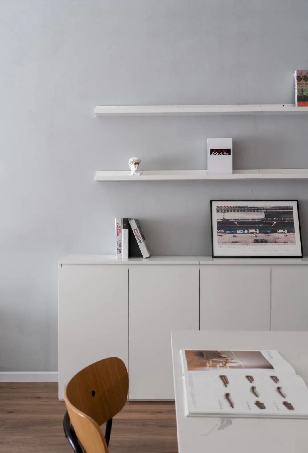 白与木,交替呈现,温暖清爽的质感在两种色调中完成了过渡、拼接、蔓延,把家由公区到私区,联系成一个内无边界,外隔喧扰的私属天地。