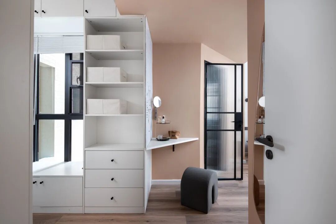 适当的留白凸显惬意悠然的生活氛围。随处可见的收纳柜,富有艺术感的转角化妆区,在白色与木色之间增添层次,令家具有审美个性,而不会趋于常规的美。