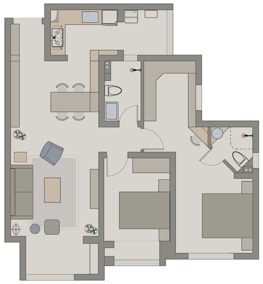 客厅和餐厅采用一体化设计,更加开阔的活动区域,是居者自我独处的场景。自由和温暖,成为隐藏的设计主题,家具时尚简约,生活功能丰富。