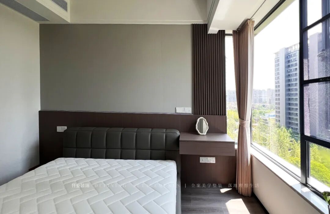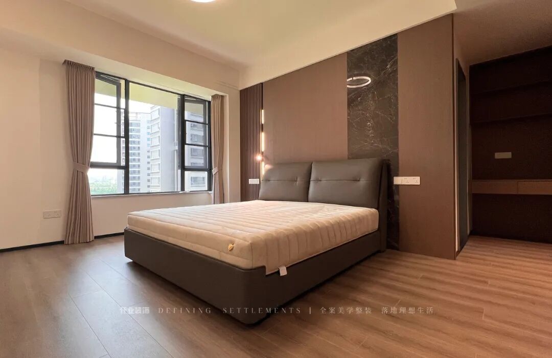 次卧结合实用性与氛围感营造,素雅天然木调,使得空间更加纯粹和宁静,自然和质朴的味道,身心在此刻得以放松,赤脚踩在温润的地板上,感受家的温度。