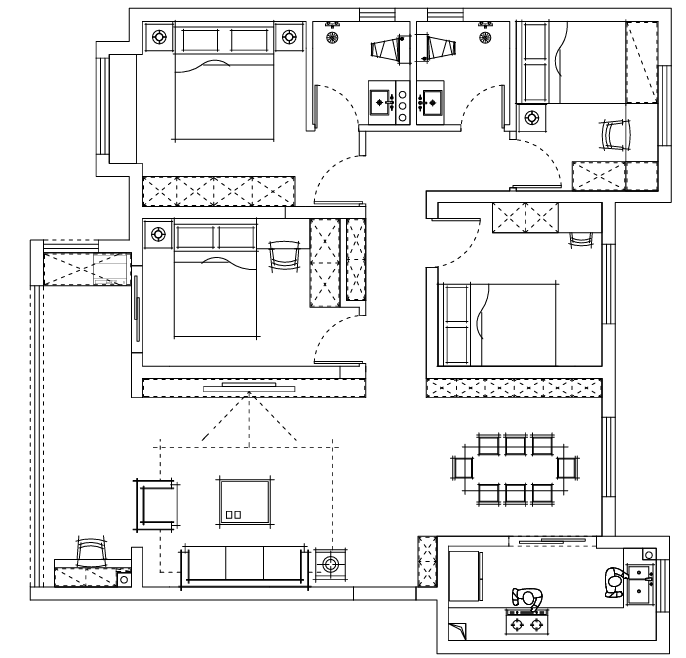 轻柔温暖的色调环绕着屋子,深色线条点缀其间显踏实、安稳。在奶油风独有的温馨感下,大胆采用石材家具来升华质感,增添了空间层次感。