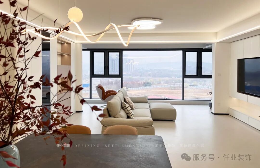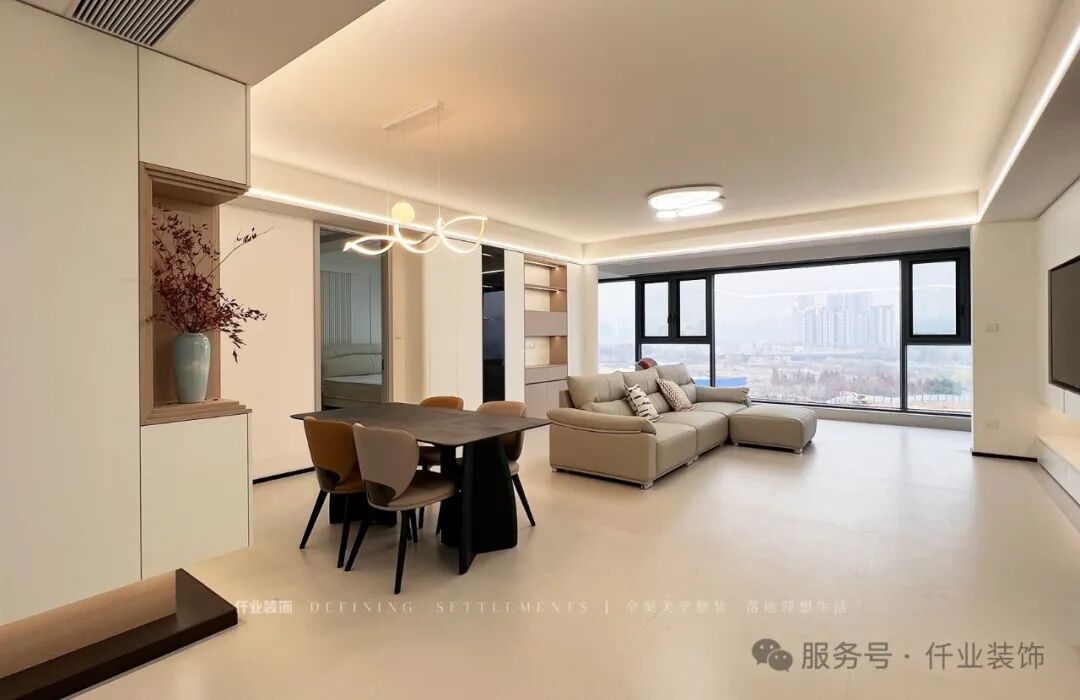 入户一抬眼,落地窗外景色映入眼帘,收获极其清爽的视觉感受,开放式格局,让整个室内空间变得更加宽阔与通透。