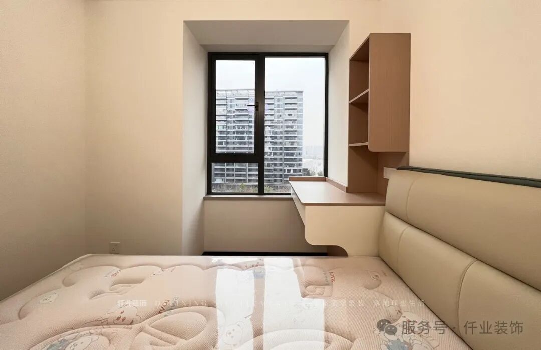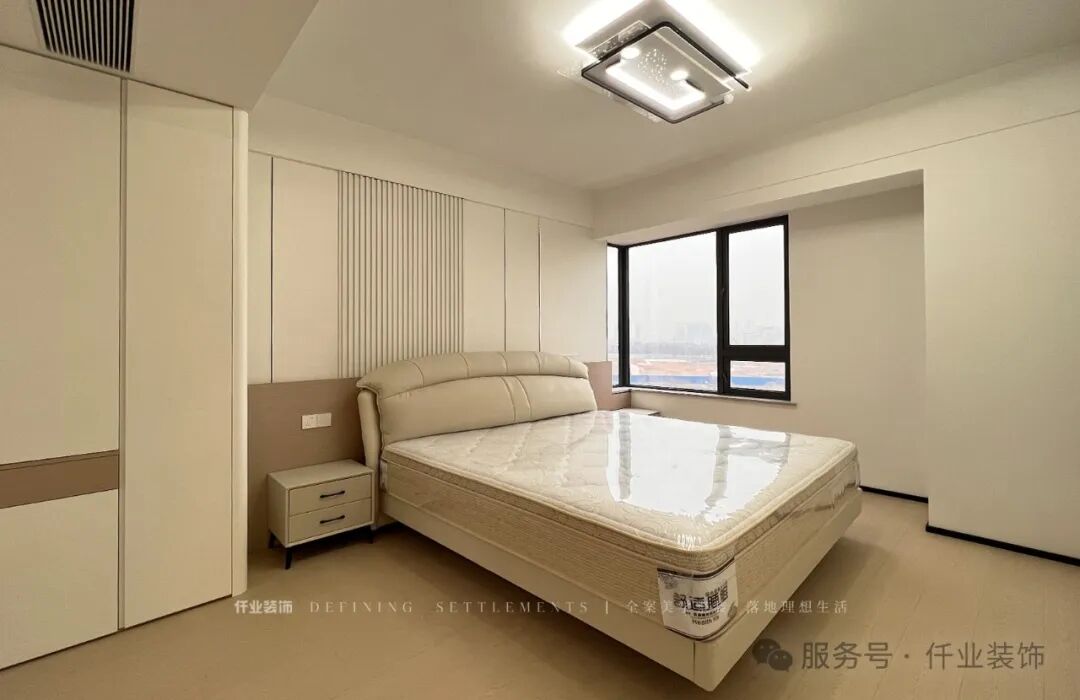 通过暖白与原木的色调组合,木质柜、浅咖色床头与格栅背景板的搭配,打造温馨私密空间,让每一天的开始与结束都能沉浸在宁静舒适的氛围中。