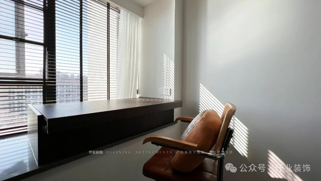 飘窗加高变作书桌,阳光透过窗户落在身上,坐在座椅上享受阳光轻抚,阅读或者办公,享受舒适一刻。
