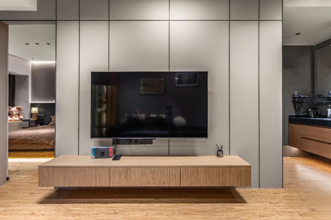 悬空电视柜下方的留白,让扫地机器人自由穿梭。