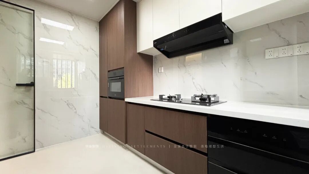 洗烘设备嵌入定制柜体,智能晾衣架收于顶层,功能隐于简洁的立面之后,诠释藏秀于内的实用美学。
