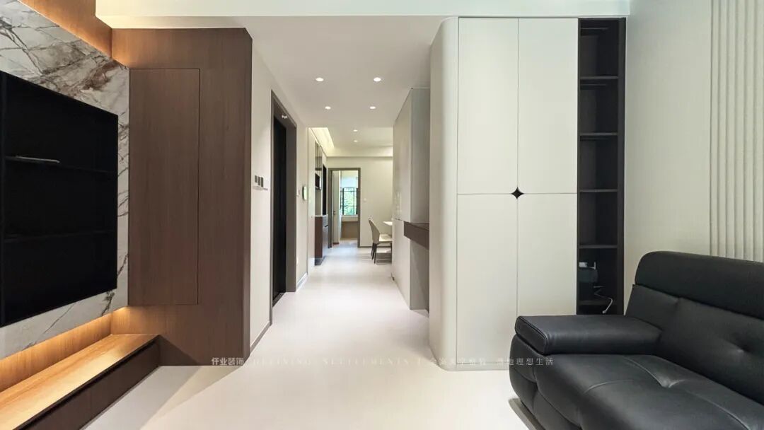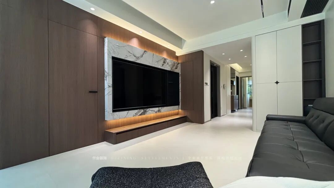 无痕隐形门巧妙融入电视背景墙面,保持整体感。