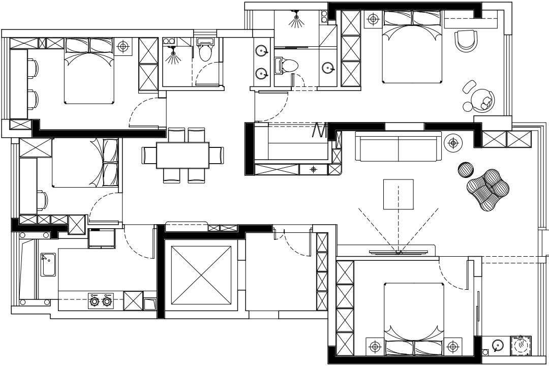 开放式的格局,黑白灰的理性调性,从容掌控着空间的节奏。明亮通透而不失互动感,在自由与共处之间,找到了家的最佳平衡。