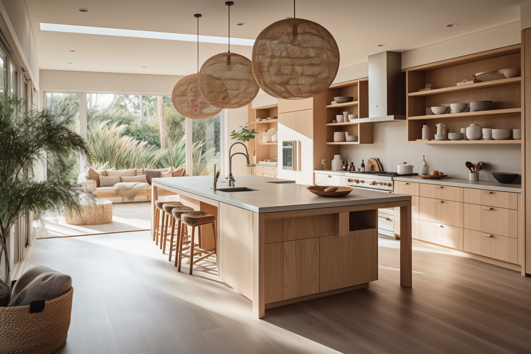 现代年轻人很少会长时间坐在电视机前观看节目,咱们将客厅中通常用于放置沙发的区域改为岛台,可以让空间得到更加高效的利用,节省室内空间。同时,后面配上长桌,可用于办公、聚会、餐饮等多种用途,功能更多元,实用性更强!