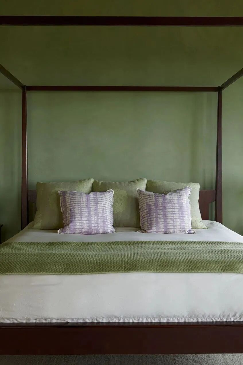 淡绿色可以让任何房间焕然一新,同时还能增添一点自然气息。在这个宁静的绿色卧室里,创造了一种平静、舒适的感觉。