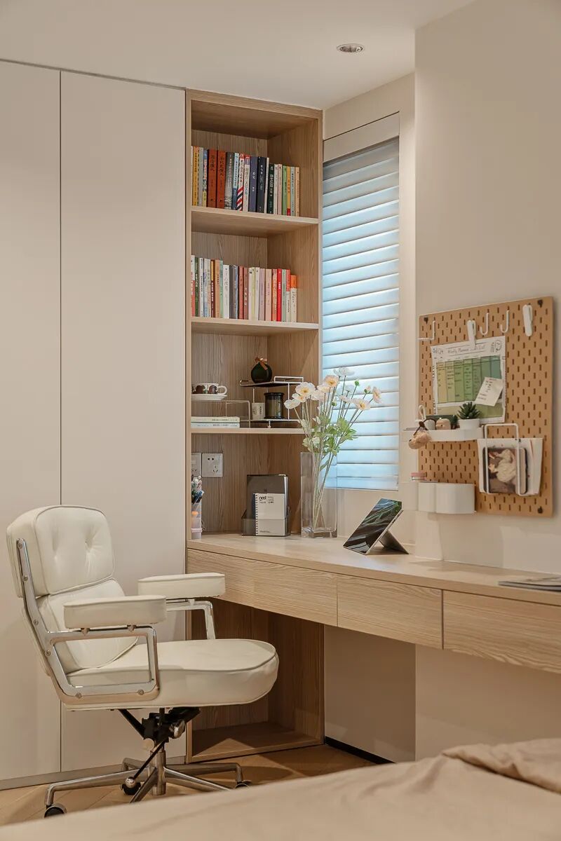 或者孩子诞生,或者与父母同住,一间休憩的卧室,是属于她的温柔港湾,即使是二人时光,相伴时各自沉心学习工作,独立且亲密,相爱且自由。