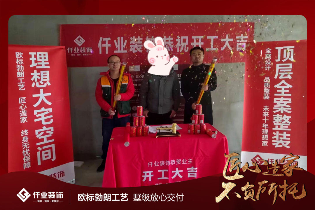 仟业装饰签约工地遍布武汉三镇及远城区,每天早上大多是举行开工仪式,提前一天做好工地施工现场保护。业主在开工仪式现场敲下的第一锤,是工地交付流程的起点。
