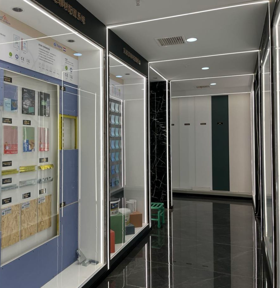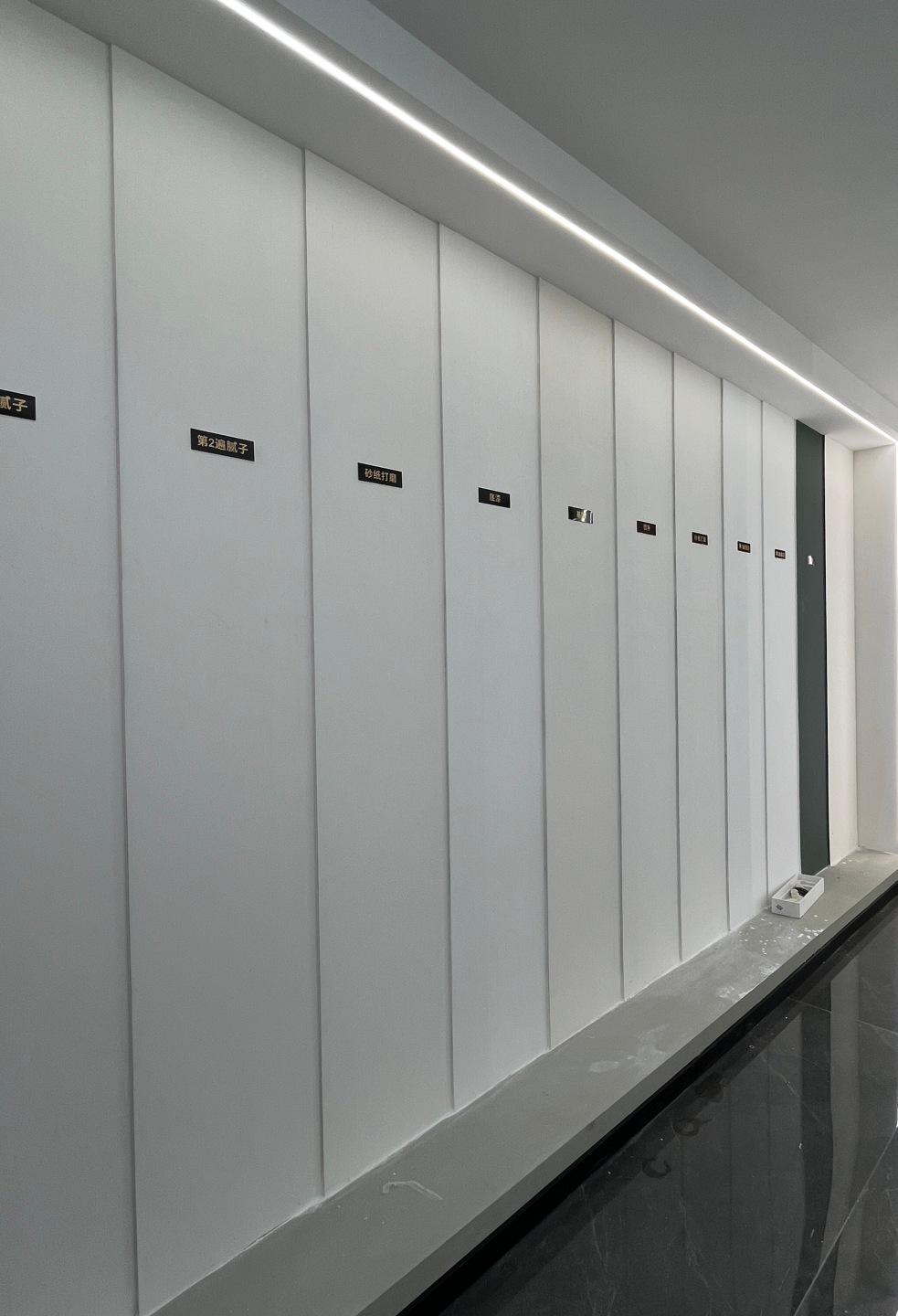 通过现场复尺,图纸深化,工业化标准化生产安装。工艺标准:1.螺丝间距18公分;2.V型缝防止开裂;3.7字转角:转角采用整张角板杜绝开裂;4.拼缝处龙骨搭接,极难变形;5.地包天工艺;6.转角、异形机器下料,精细度高。