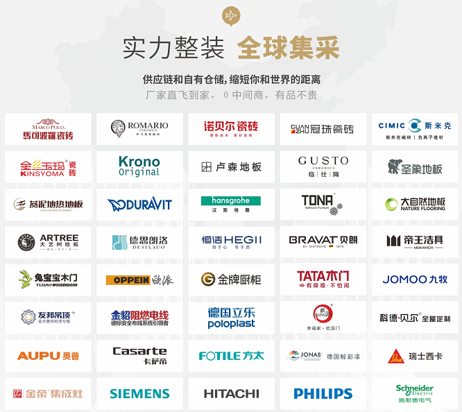 采用F2C(工厂直采)模式,整合一线品牌供应商,联合全球100+家超一线大牌潮牌,厂家源头直采,万款潮流家居尖货,厂家直飞到业主家,打破供应商层层溢价,品质更优,性价比更高。