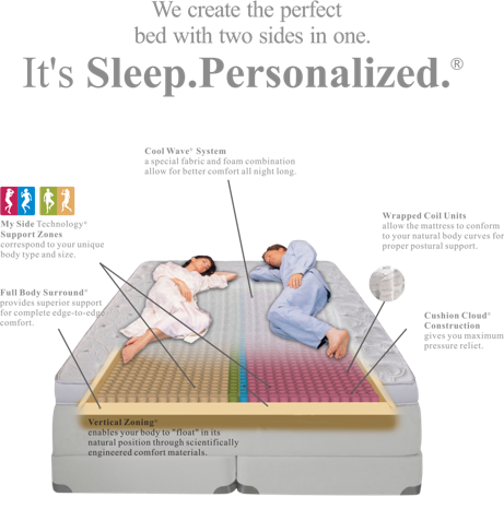 My Side,美国科技定制睡眠品牌。源自于美国116年贵族定制床垫品牌KINGSDOWN,INC.,是由美国科学睡眠研究机构Sleep to Live Institute认证的真正个性定制床垫。