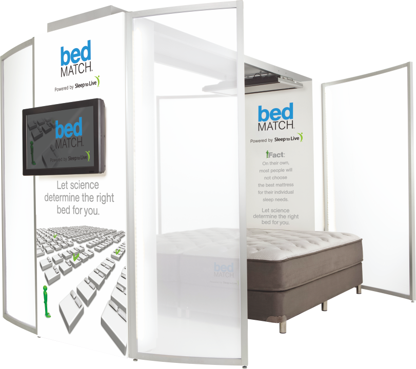 只需躺在bedMATCH测试床上5分钟,就可获得专属的睡眠报告。睡眠报告决定着每位顾客专属的支撑指数、匹配的床垫色彩、枕头高度等,并根据检测指数为客户提供合适的睡眠解决方案。