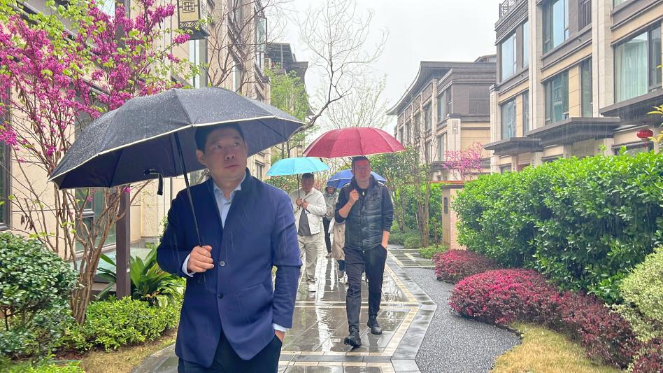 ▲调研团一行在仟业装饰武汉玺院小区工地现场