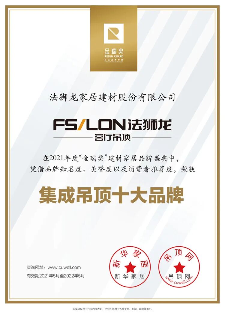 大牌上新丨法狮龙吊顶,中国集成吊顶行业十大领导品牌