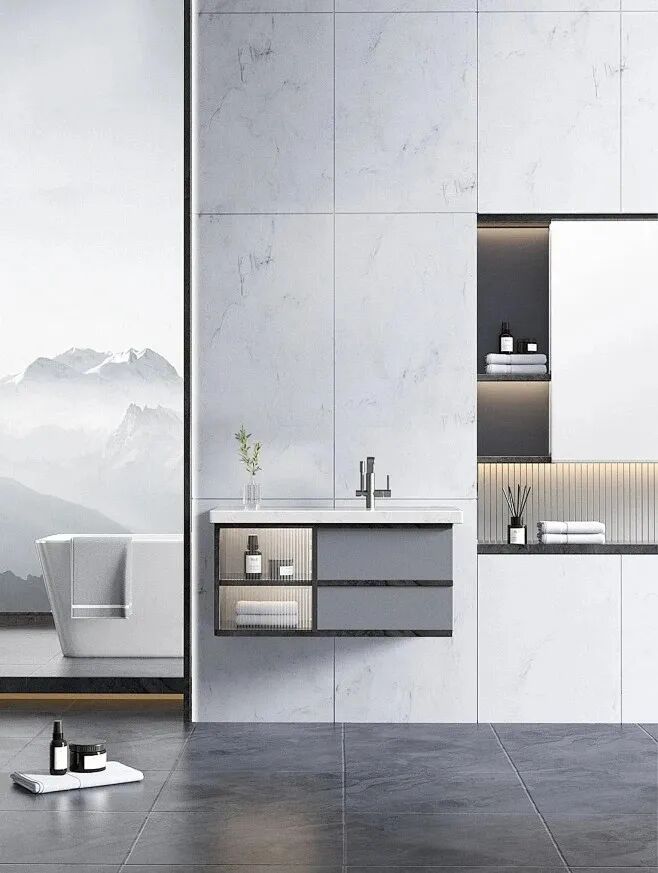 为浴室提供更多储物空间开门、抽屉、开放格等多种柜体