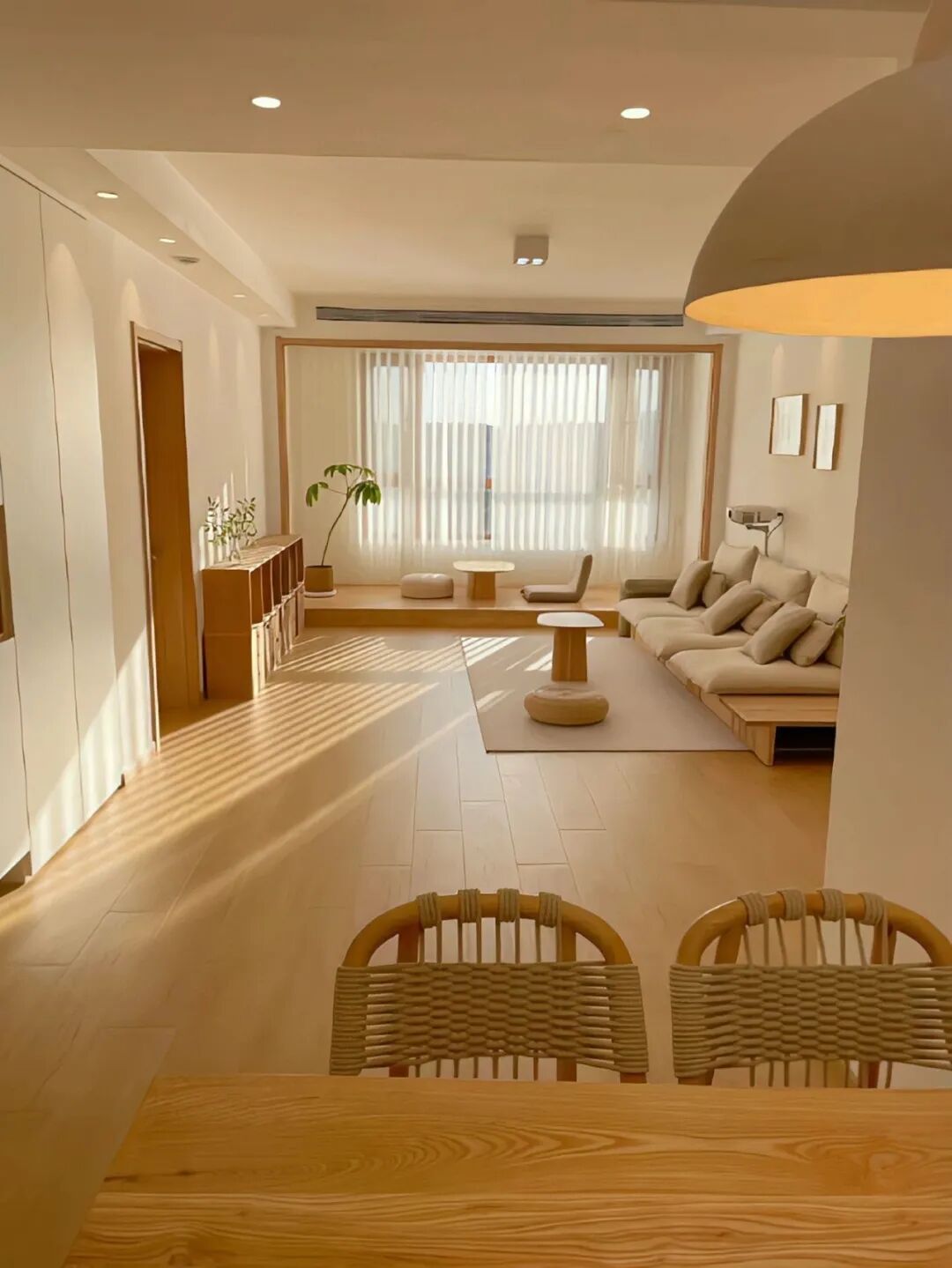 在日式装修风格房间装修中,它延续了日本传统和式建筑的空间特色,能将空间划分成几个不同的功能区域。同时,在选材上也多选用木质材料进行装修,贴近大自然,带给人无限的禅意。